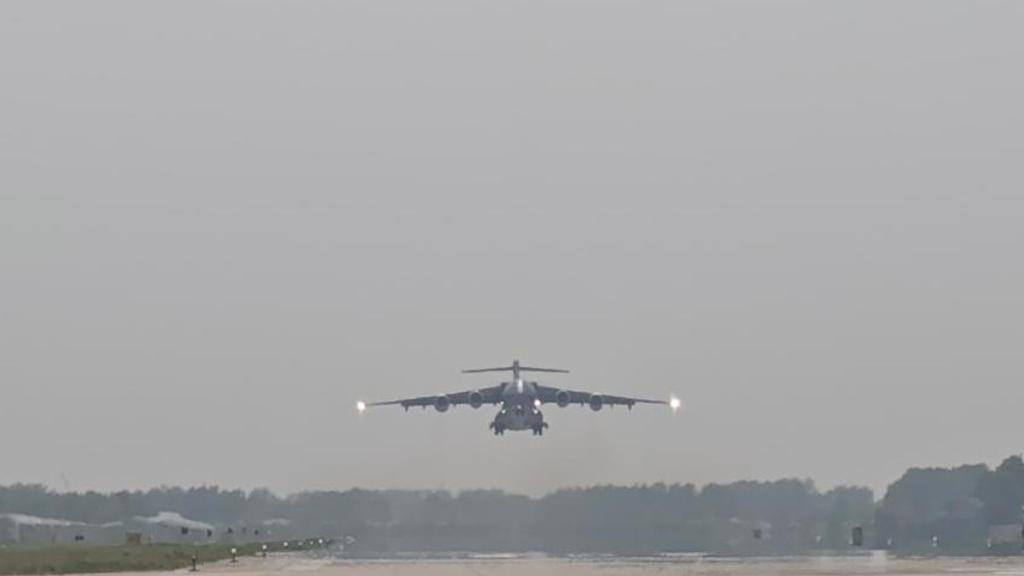 4月20日,中国空军运-20B军用大型运输机赴韩国执行接迎第十三批志愿军烈士遗骸回国的神圣任务。运-20B返程进入中国领空后,中国空军将派4架歼-20护航。